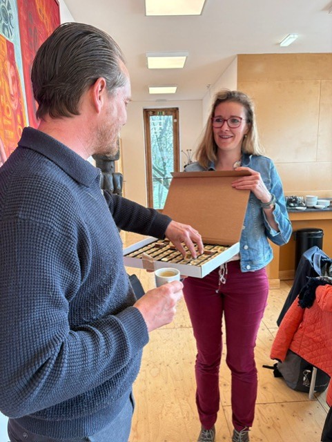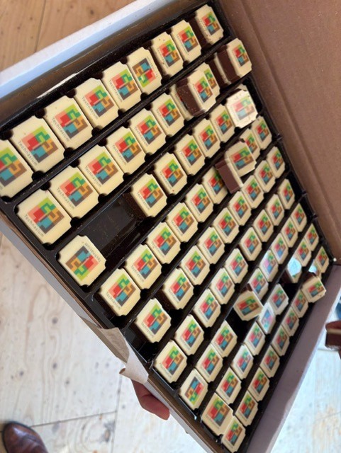 Tijdens de scholingsweek delen we ook altijd Technasium-bonbons uit. Als je dan op dag twee met de bonbons langskomt, hebben de deelnemers zoiets van ‘oh, daar is die kartonnen doos weer!’ Ze zijn echt populair.”