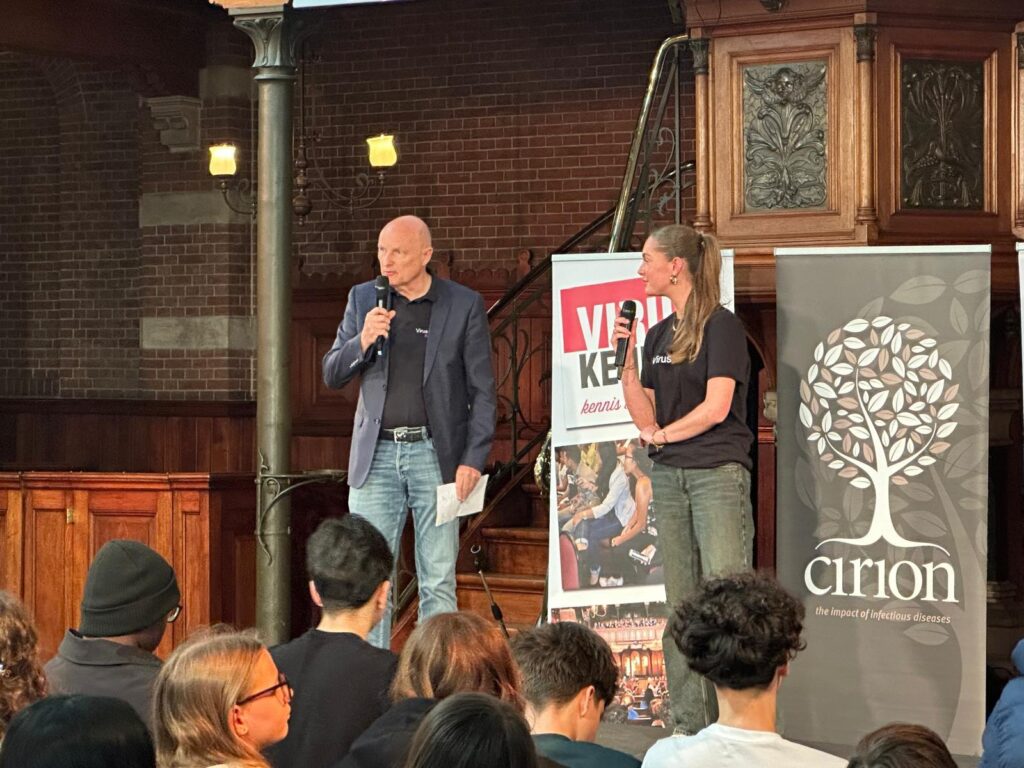 Donderdag 9 april was de internationale finale van Viruskenner in Rotterdam. Tweedeklassers van veertien technasiumscholen uit Nederland deden mee aan het project, samen met scholen uit België, Italië en Suriname. In totaal bogen ruim 750 leerlingen zich over een dringende vraag van de afdeling virologie van het Erasmus MC: hoe voorkomen we de verspreiding van gevaarlijke virussen? Uiteindelijk vielen vier teams van het Keizer Karel College en het Houtkamp College in de prijzen. Van harte gefeliciteerd!